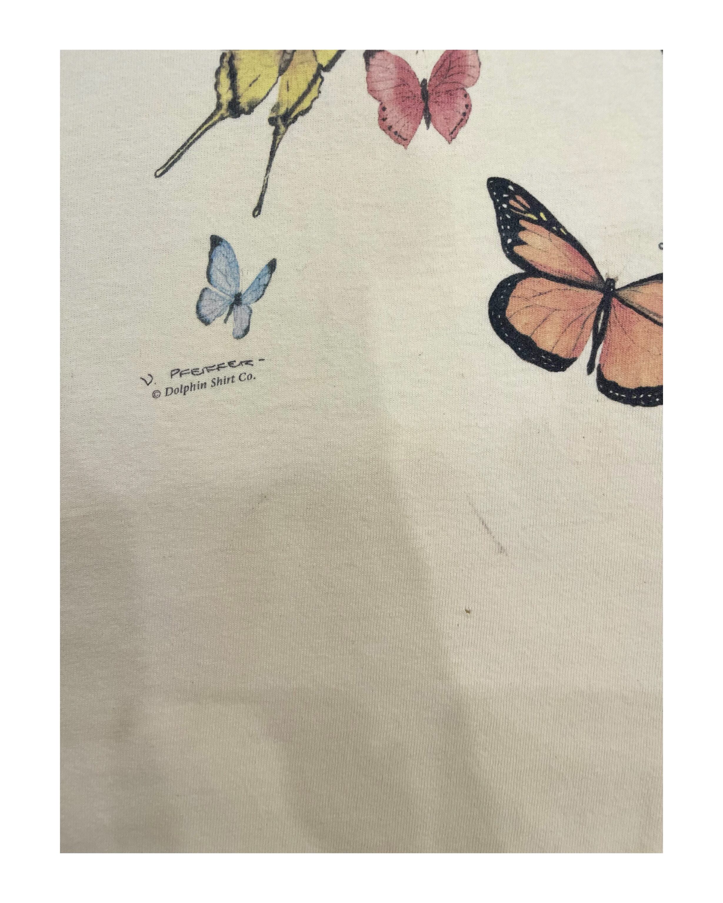 右肩袖付近・下腹部辺りに薄汚れ、下腹部辺りにピンホールがございます(画像にてご確認お願い致します。)古着慣れされていれば問題ないレベルです。