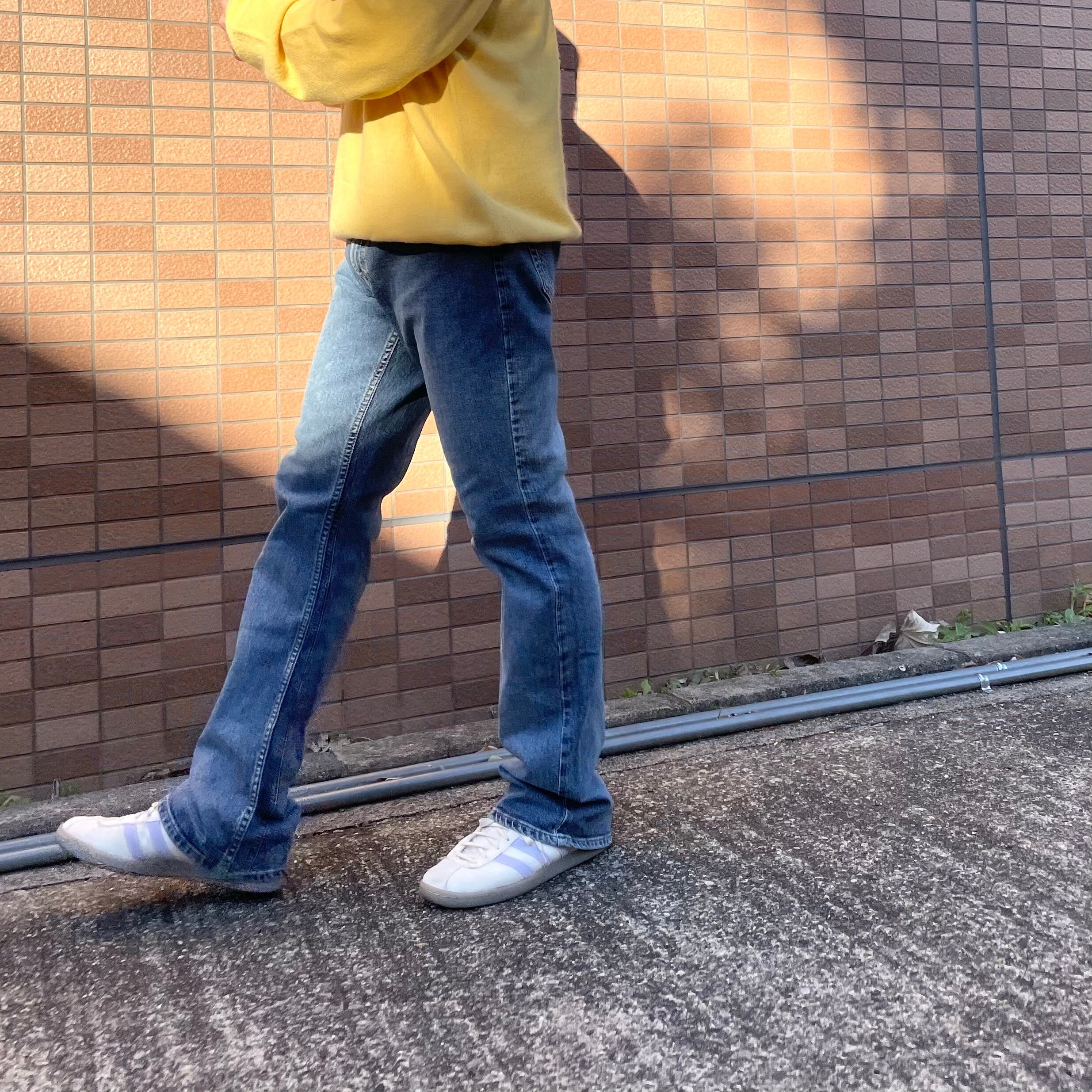 ブーツカットのほんのりフレアが効いており、合わせやすい