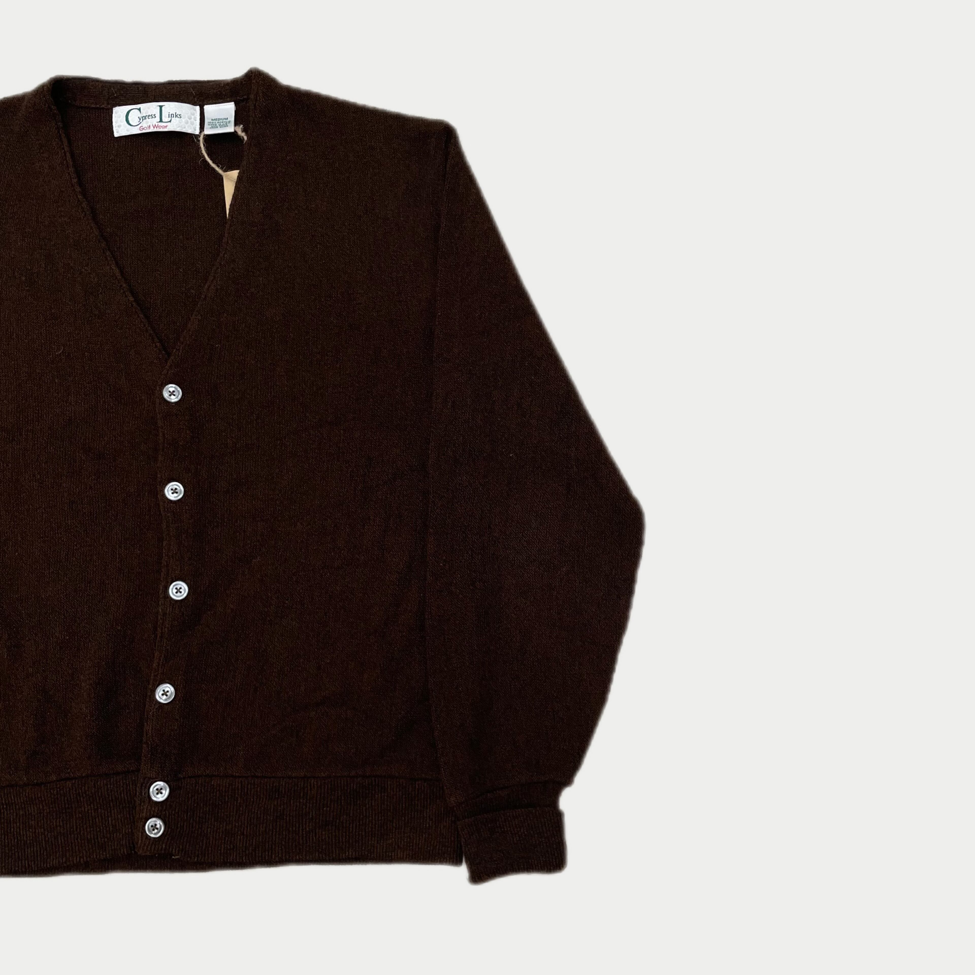 vintage acrylic knit cardigan mélange dark brown color made in USA