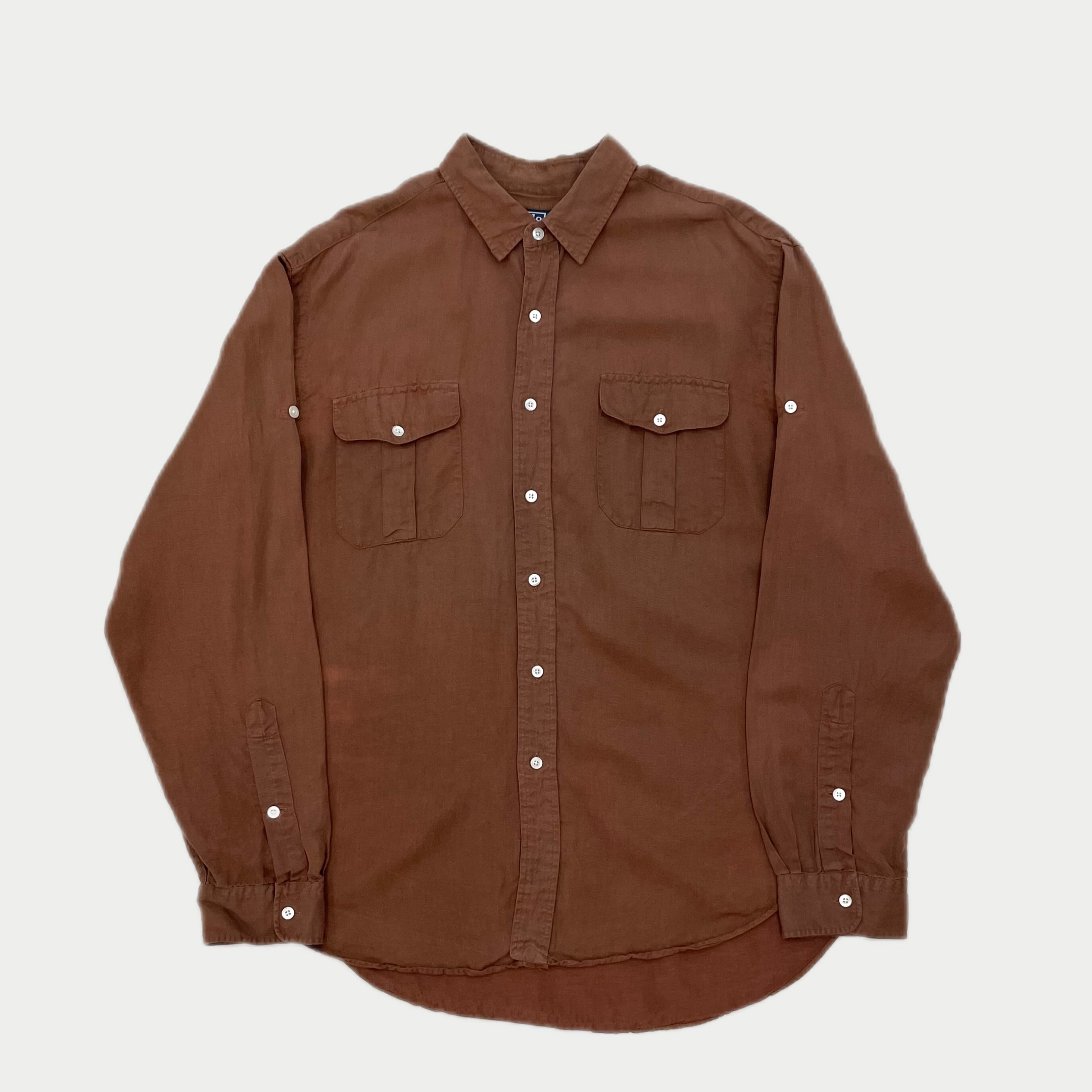 Polo by Ralph Lauren silk × linen shirt double flap pocket brown color