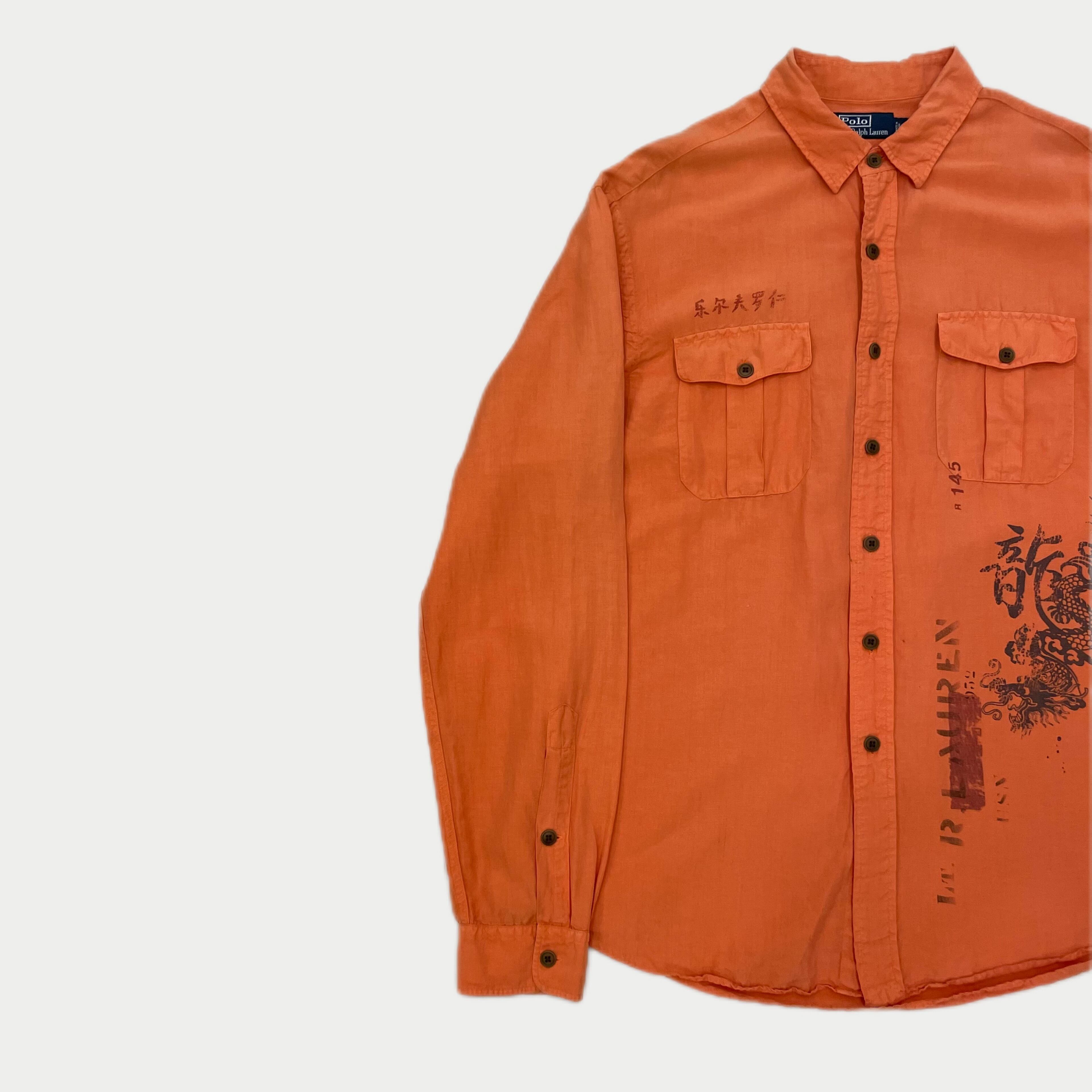 Polo by Ralph Lauren silk × linen shirt Chinese dragon double flap pocket orange color