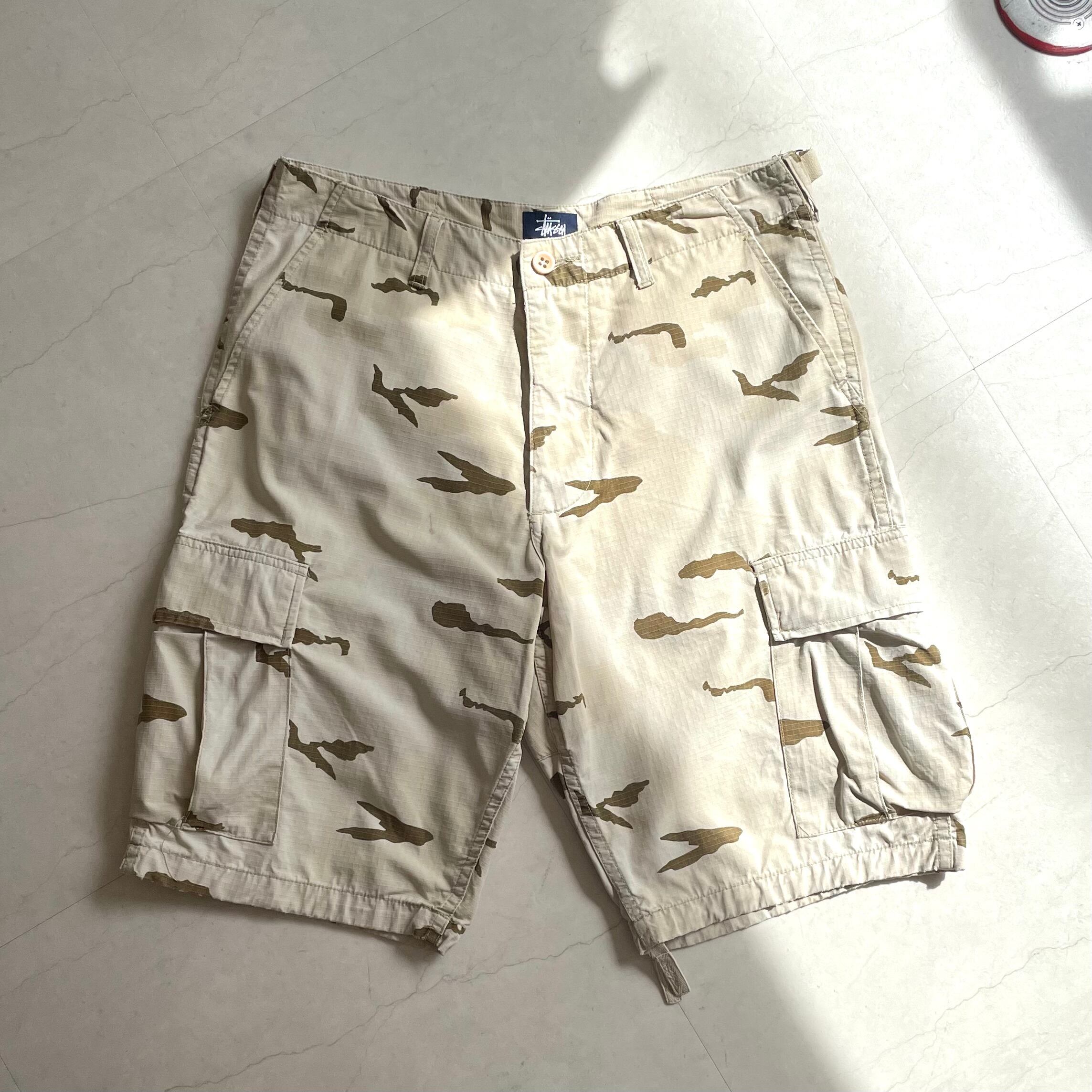 stussy のカーゴショーツ、デザートカモの柔らかい印象がグッド