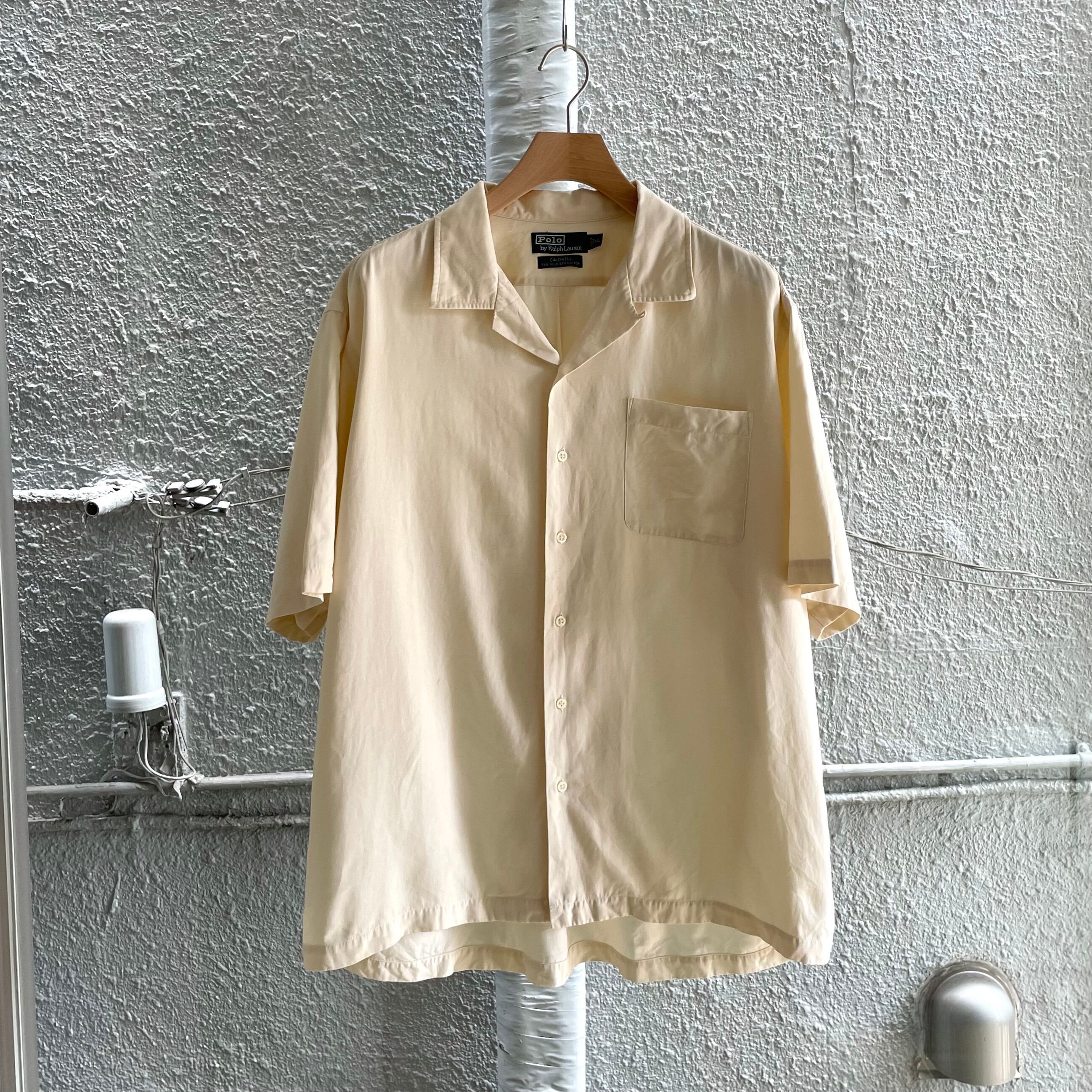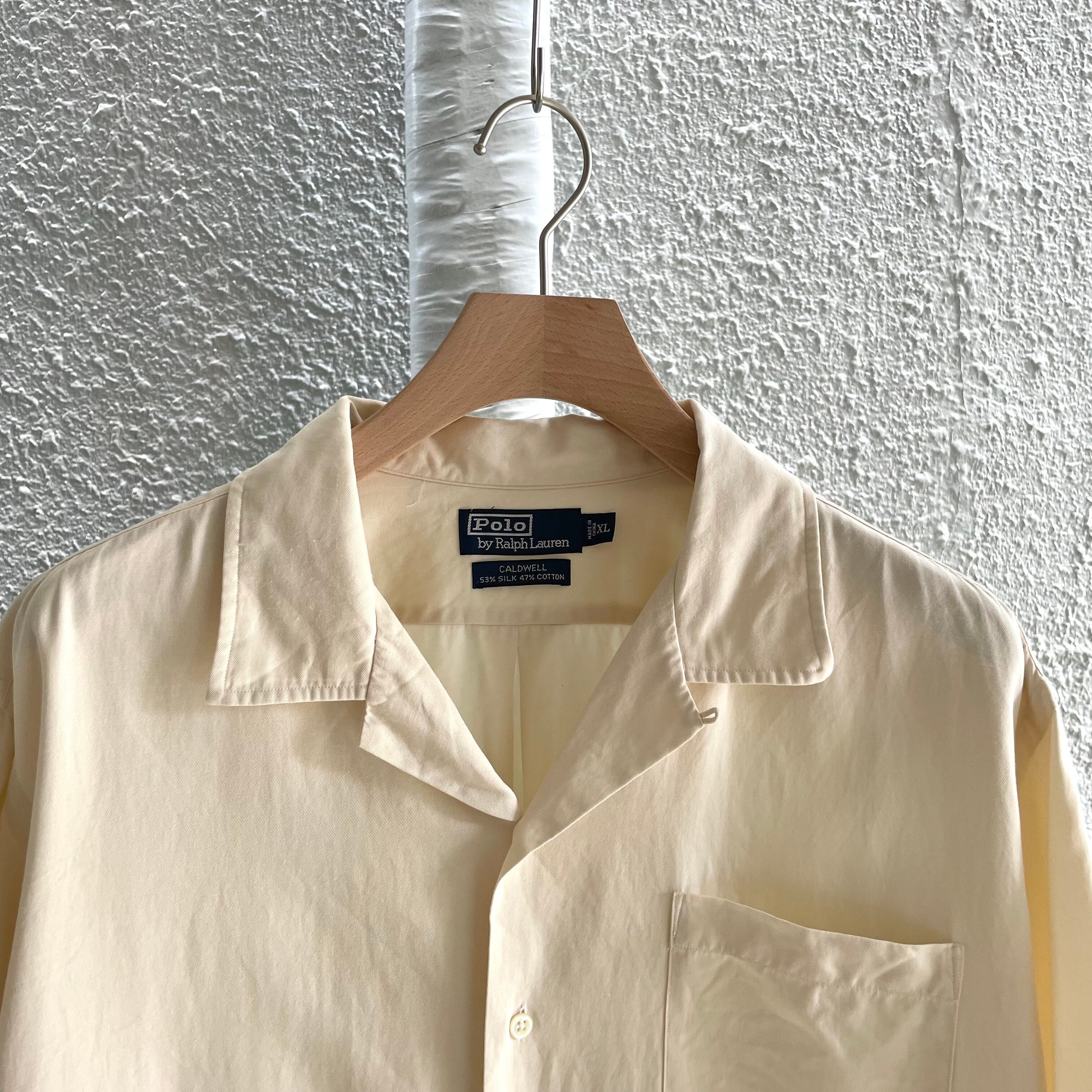 Polo by Ralph Lauren "CALDWELL" silk × cotton open collar shirt off-white color